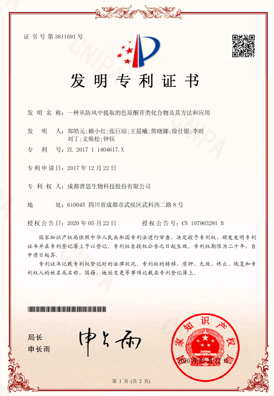 2019年 普思作為主要完成單位之一申報的“基于構效關系的中藥活性物質發現及其開發應用”項目,榮獲四川省科學技術廳科技進步一等獎。